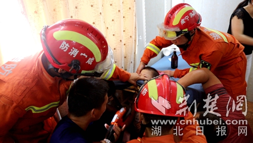 荊楚網(wǎng)消息(通訊員 劉麗娜 朱濤)7月10日15時(shí)09分,湖北省咸寧市消防救援支隊(duì)指揮中心接到報(bào)警稱:通山縣龍鼎麗都美容院2樓小孩頭被卡住,急需救援。接到報(bào)警后,通山縣消防救援中隊(duì)出動(dòng)1輛消防車、6名消防指戰(zhàn)員緊急趕赴現(xiàn)場進(jìn)行處置。