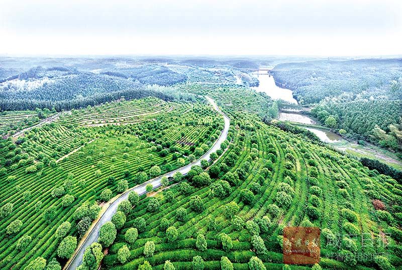 7月7日,星期天,咸安區(qū)汀泗橋鎮(zhèn)黃荊塘村,沿著一條黑紅相間的柏油路前進(jìn),滿目茶樹(shù)青翠欲滴,淡淡的茶香撲鼻而來(lái),讓人瞬間心曠神怡。
