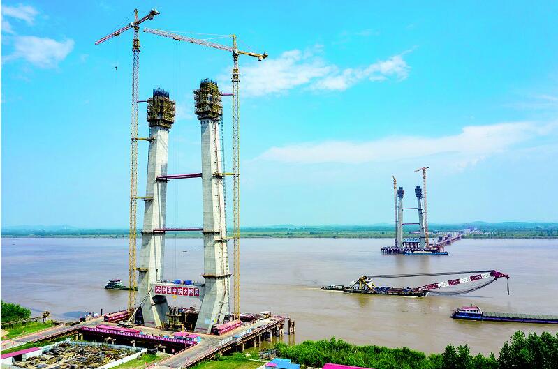 8月21日,赤壁長江大橋正在進(jìn)行南北主塔中塔柱施工,南北主塔高度達(dá)到了133米,占總高度的60%左右。赤壁長江大橋連接赤壁市與洪湖市,主橋是雙塔雙索面斜拉結(jié)構(gòu),主塔為H形。承建單位中鐵大橋局在高溫天氣縮短白天施工時(shí)間,早晚補(bǔ)工,保障施工進(jìn)度不因酷暑延后。預(yù)計(jì)明年2月能按期實(shí)現(xiàn)主塔封頂?shù)仁┕つ繕?biāo)。(視界網(wǎng) 馬海斌 攝)