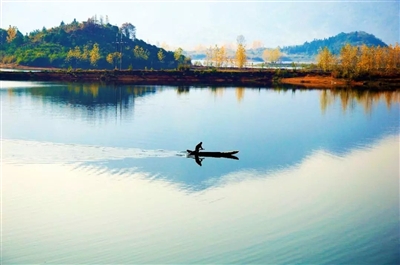 微風(fēng)拂過,水波蕩漾,片片蘆葦在水中搖曳,間或中激起的水花,驚起鷗鷺,青天之上便有了精靈的舞動(dòng),如此天上、地下、山中、湖面處處皆景,足以讓人心搖神醉。