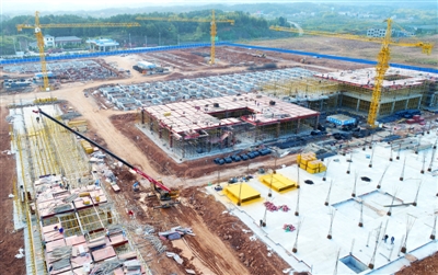 11日,通山縣南林橋雙創(chuàng)(扶貧)產(chǎn)業(yè)園一期建設(shè)工地一片繁忙。