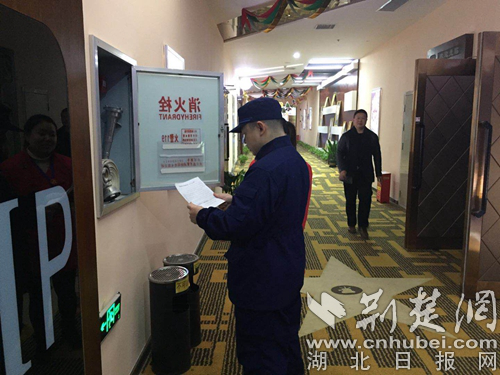 消防監(jiān)督員春節(jié)期間檢查場(chǎng)所消防設(shè)施。(通訊員 阮子祥 攝)
