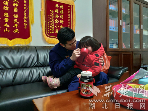 消防員堅(jiān)守崗位家人來隊(duì)陪值班。(通訊員 徐聰 攝)