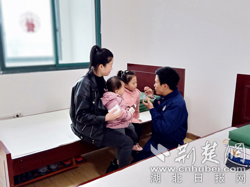 溫泉大隊(duì)參謀 喻劍溫泉大隊(duì)參謀喻劍——春節(jié)期間堅(jiān)持駐守在自己的崗位上,未能回到家中和親人團(tuán)聚。2月8日,年幼的女兒想念父親,在和他的視頻中哭泣,詢問爸爸為什么還不回家,喻參謀不忍心欺騙孩子,只能暗暗傷心。到了當(dāng)晚,妻子攜女兒來到三號(hào)橋執(zhí)勤站探望駐守在崗的他,給他帶來了一個(gè)驚喜,相機(jī)記錄下這幅溫馨和諧、父慈子孝的親情畫卷。
