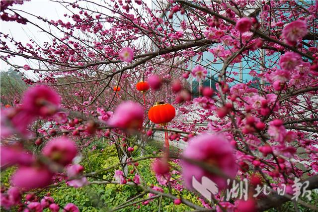 2月13日,咸寧市咸安區(qū)桂鄉(xiāng)大道兩旁的紅梅花在風(fēng)雨中含笑迎賓。眼下,隆冬尚未消退,風(fēng)雨交夾,寒氣逼人。位于湖北省南部的咸寧市,紅梅花在枝頭綻放,預(yù)示著春天的腳步越來越近了。(湖北日?qǐng)?bào)全媒記者 陳勇 攝)