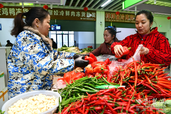 荊楚網(wǎng)(湖北日報(bào)網(wǎng))訊(通訊員劉建平 胡永志 付婧燁)“承東啟西匯南北,商貿(mào)富縣促發(fā)展”……1月3日,通城縣鄂南農(nóng)貿(mào)大市場大門口上的大紅對聯(lián)在冬日的暖陽下格外亮眼,斥資1.2億元打造的智慧農(nóng)貿(mào)大市場正式開門迎客。