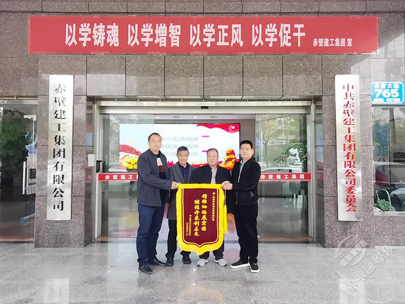 11月20日,神山鎮(zhèn)鐘鳴村村支書易正軍帶領(lǐng)村委會成員及村民代表,將一面寫著“精雕細琢展宏圖,繼往開來創(chuàng)未來”的錦旗送到赤壁建工集團,以表達他們對建工集團水建公司在該村高標準農(nóng)田改造工作中,所付出的辛勤勞動的感謝之情。