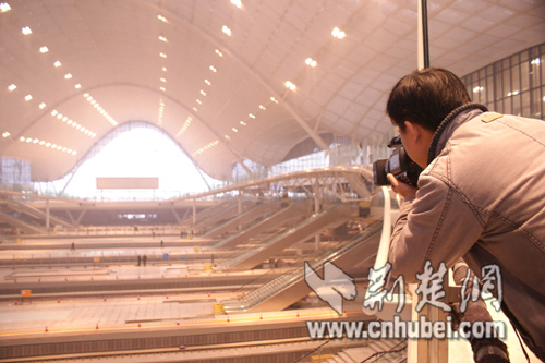 記者拍攝武漢火車(chē)站候車(chē)大廳