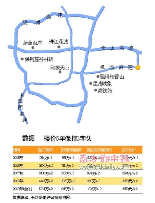 在長(zhǎng)沙市巡城的短短幾天里,記者所到之處都可以發(fā)現(xiàn)不少樓盤(pán)在建或者在售。據(jù)當(dāng)?shù)孛襟w資深人士介紹,目前長(zhǎng)沙在售的樓盤(pán)就已經(jīng)超過(guò)200個(gè),還有不少正在動(dòng)工建設(shè)中,這些樓盤(pán)動(dòng)不動(dòng)就是數(shù)百畝,甚至上千畝。面積遠(yuǎn)大于長(zhǎng)沙的廣州市,目前活躍樓盤(pán)只在100個(gè)左右,并且不少還是袖珍樓盤(pán)。另外,長(zhǎng)沙城區(qū)人口才不到300萬(wàn)人,廣州已經(jīng)超過(guò)1000萬(wàn)。雖然長(zhǎng)沙人口不到廣州的三分之一,但是長(zhǎng)沙的房地產(chǎn)銷(xiāo)售面積近幾年都超過(guò)廣州,今年1至10月份長(zhǎng)沙銷(xiāo)售面積已經(jīng)超過(guò)1000萬(wàn)平方米。