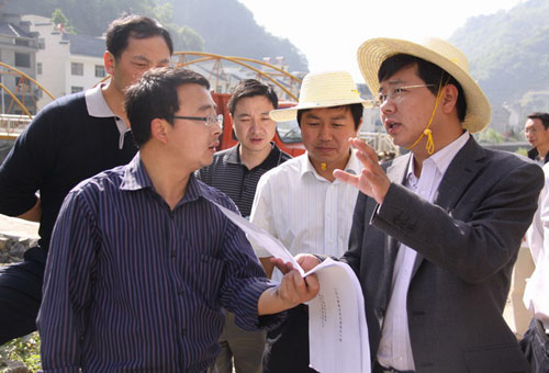 神農(nóng)架林區(qū)黨委政府召開下谷鄉(xiāng)現(xiàn)場辦公會議。右一為周森峰。