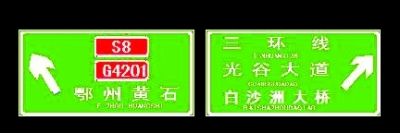 武黃高速進(jìn)入三環(huán)線(由高新往青山、漢口方向)設(shè)有4組指路牌,指向標(biāo)明的都是“三環(huán)線東”,但“三環(huán)線東”沒(méi)有明確的定義,容易產(chǎn)生誤導(dǎo)。