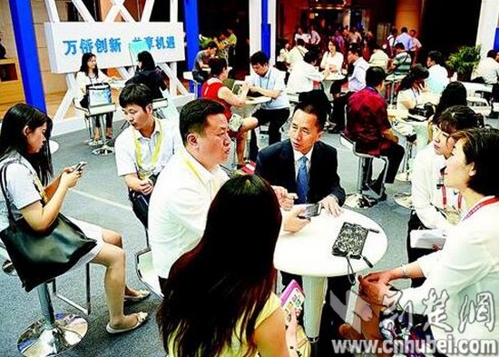 圖為:上圖:與會(huì)嘉賓認(rèn)真洽談。